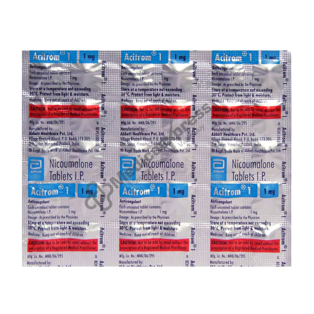 Acitrom 1 tablet 30's a popular oral anticoagulant therapy in a variety of indications, including calf deep vein thrombosis (blood clots in leg veins), proximal deep vein thrombosis (blood clots in a deep vein), pulmonary embolism, recurrent venous thromboembolism, antiphospholipid syndrome, and mechanical heart valves.Disclaimer:For more information contact your physician