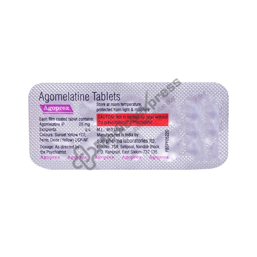Agoprex Tablet is used to treat depression. It alleviates and eventually eliminates depression symptoms such as deep sadness, feelings of worthlessness, loss of interest in activities, sleep disturbances, tiredness, anxiety, and weight changes.Disclaimer:For More Information Contact Your Physician