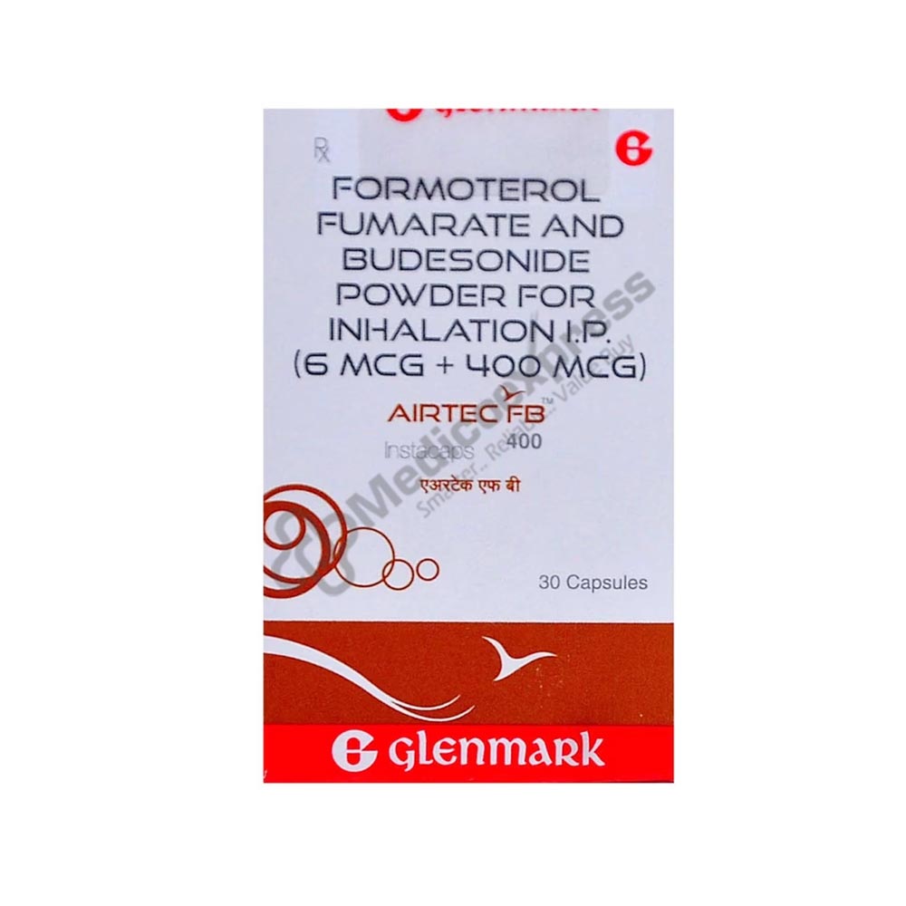 Airtec FB 400 Instacap 30'S contains the long-acting beta-adrenergic agonists budesonide and formoterol, which are part of the class of drugs known as inhaled corticosteroids. For the regular treatment of moderate to severe Chronic Obstructive Pulmonary Disease (COPD) with frequent symptoms and a history of recurrent exacerbations in adults and children older than 6 years, AIRTEC FB 400 INSTACAP is used.Disclaimer : For More Details, Contact Your Physician