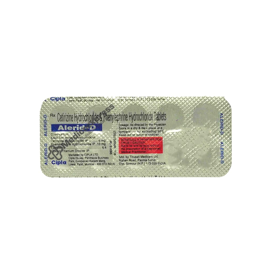 Alerid D Tablet 10 is made up of two medications: cetirizine (antihistamine) and phenylephrine (decongestant). Cetirizine is an antihistamine (anti-allergic drug) that works by blocking the action of histamine, a substance that causes allergic reactions.Disclaimer:For More Information Contact Your Physician