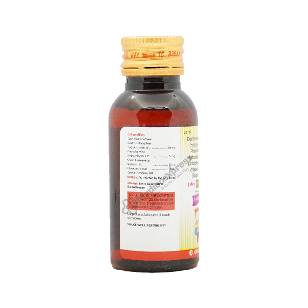Alex Junior DS Syrup 60 ml belongs to a group of drugs called "cough and cold preparations" and is primarily used to treat dry cough. The body uses coughing, whether it is productive or dry, to clear mucus, smoke, and other airway irritants, as well as to guard against infection. Both dry cough and chesty cough are different types of coughs. A chesty (wet) cough produces mucus or sputum, whereas a dry cough is ticklish and doesn't produce any virulent or thick mucus.Disclaimer : For More Details, Contact Your Physician