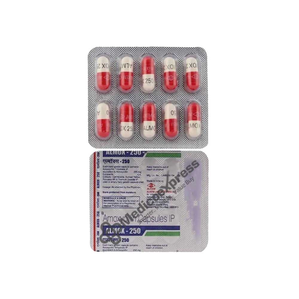 Almox 250 Capsule is prescribed to treat a wide range of bacterial infections. It works well for infections of the throat, ear, nasal sinuses, respiratory tract (including pneumonia), urinary tract, skin and soft tissue, and typhoid fever.Disclaimer:For More Information Contact Your Physician