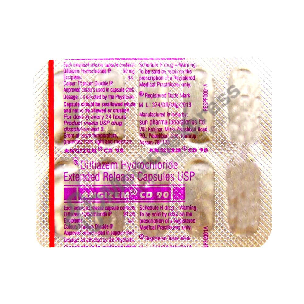 Angizem CD 90 Capsule 10 belongs to a class of antihypertensive medications known as 'calcium channel blockers,' which are used to treat mild to moderate hypertension (high blood pressure).Disclaimer:For More Information Contact Your Physician