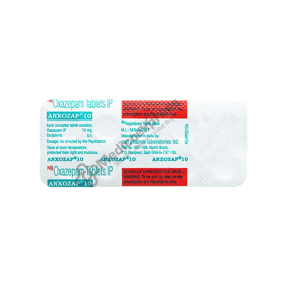Anxozap 10 Tablet 10 belongs to a class of benzodiazepines known as 'anxiolytics' or 'anti-anxiety agents' that are used to treat anxiety or panic disorder in the short term (2-4 weeks).Disclaimer:For More Information Contact Your Physician