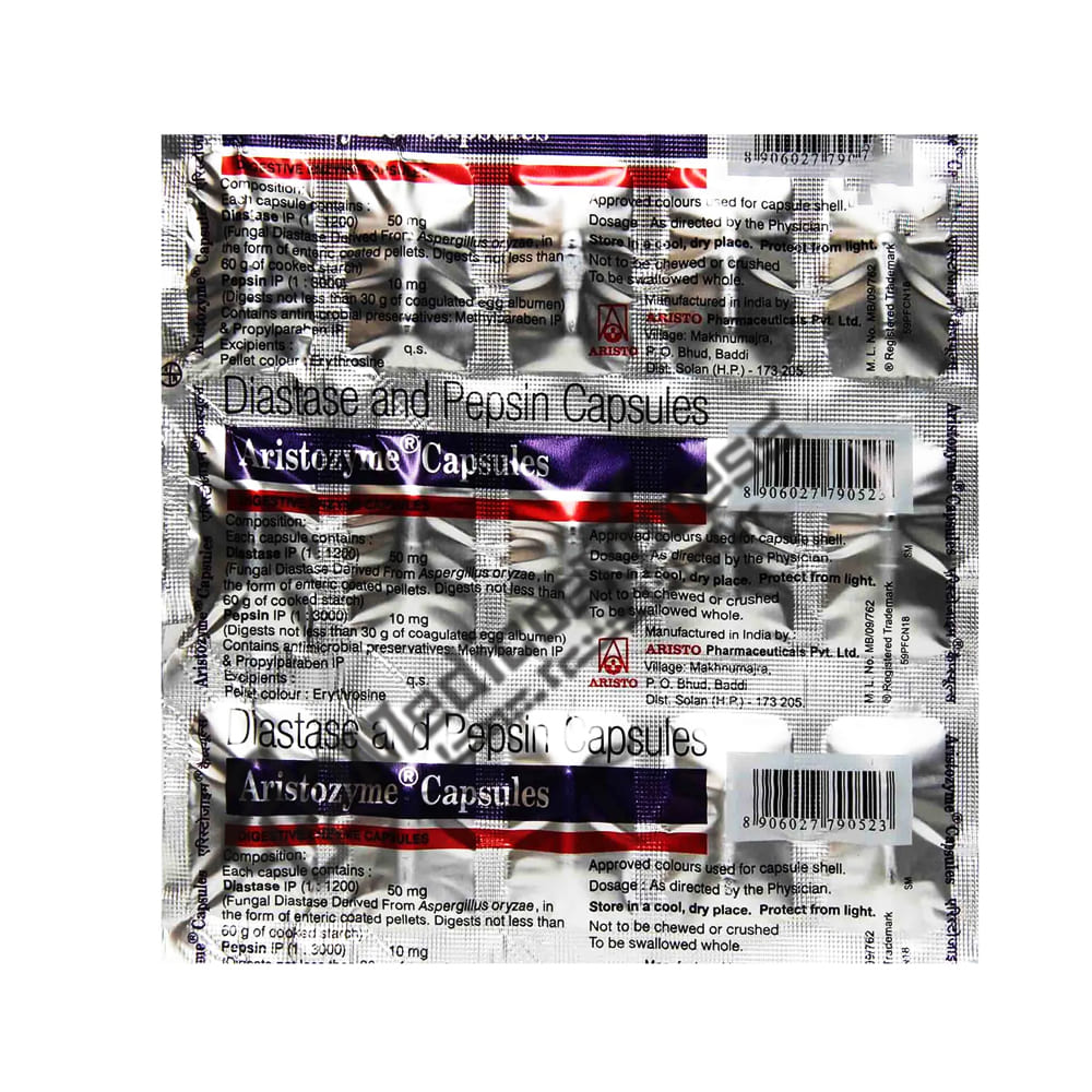 Aristozyme is a digestive enzyme that degrades starch. It is also used to treat flatulence, distension, and other ailments.Disclaimer:For more information contact your physician