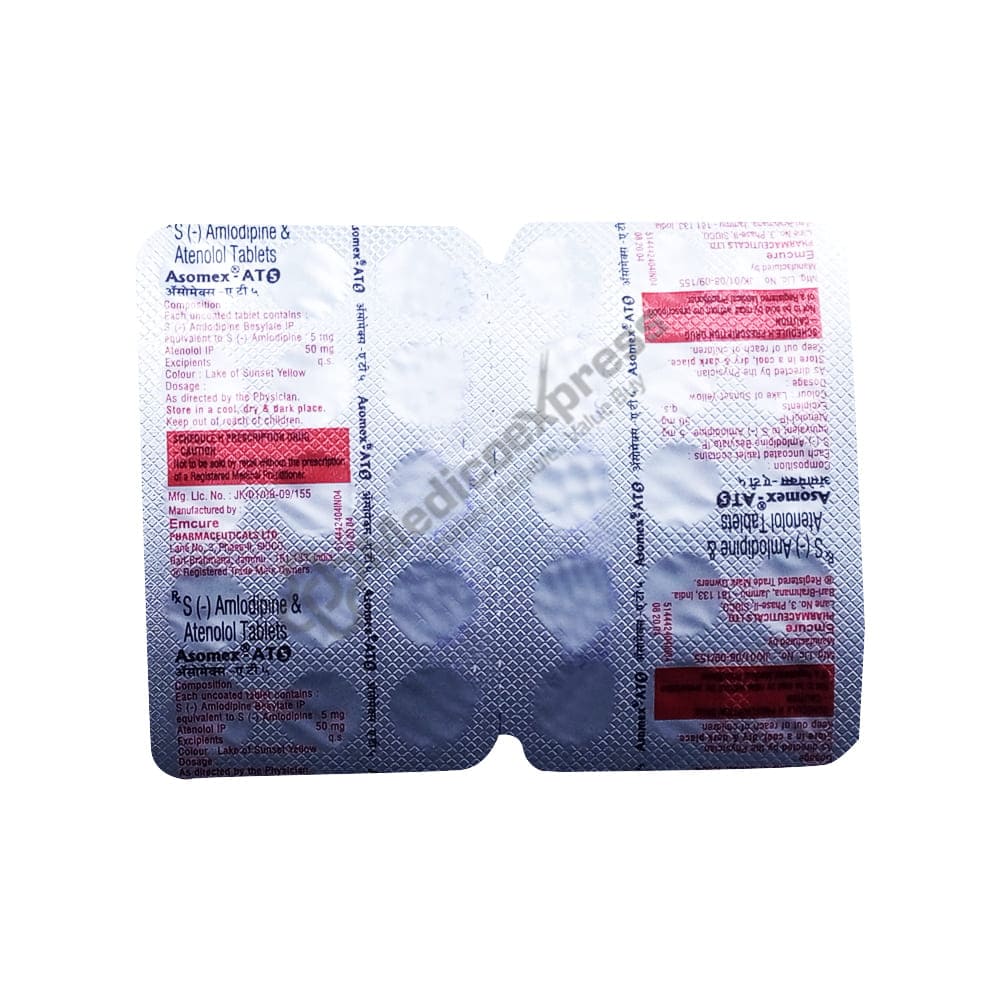 Asomex-at 5mg tablet 15 is a 'antihypertensive medication,' which is primarily used to treat hypertension (high blood pressure).Disclaimer:For more information contact your physician