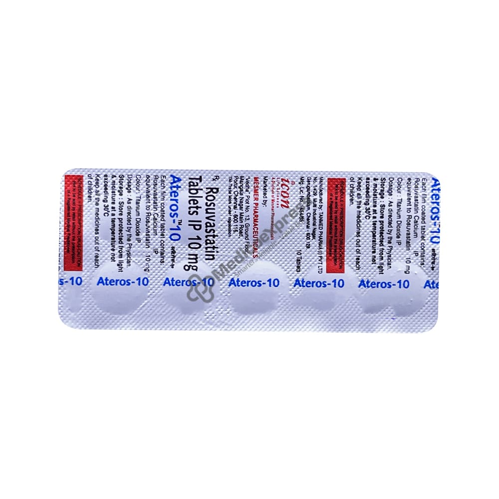 Ateros 10mg Tab Tablet 10s is a member of the statin drug class, which lowers levels of glycerides and bad cholesterol (low-density lipoprotein, or LDL), lowering the risk of heart attack and stroke in the future.