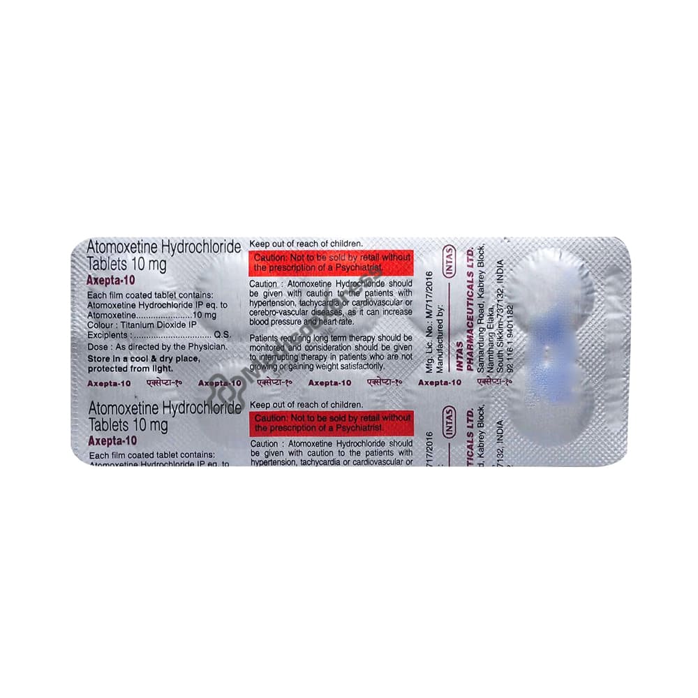 Axepta 10 Tablet 10's Is a Drug In a Class Known As Selective Norepinephrine Reuptake Inhibitors. The Antidepressant Axepta 10 Tablet 10's Is Used To Treat Attention Deficit Hyperactivity Disorder (Adhd).Disclaimer:For More Information Contact Your Physician