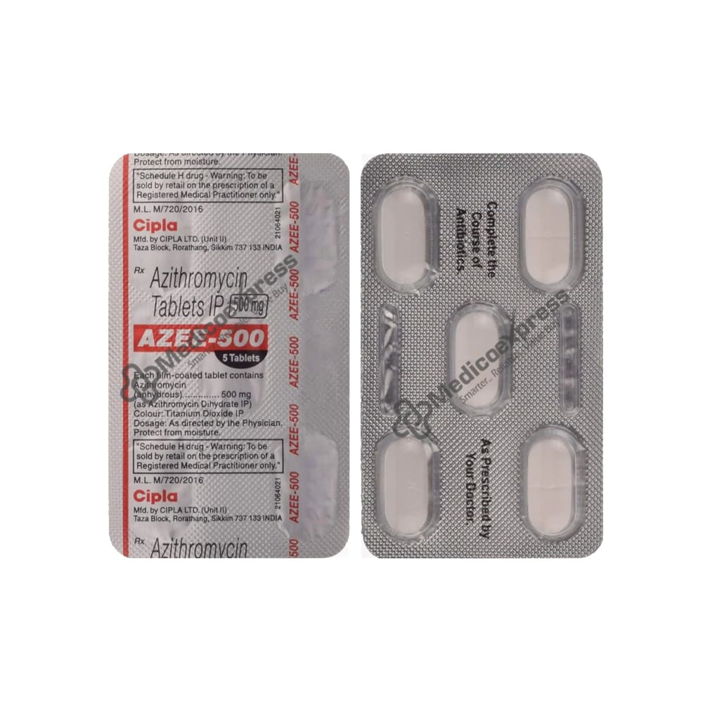 Azee 500mg Tablet 10's belongs to the macrolide antibiotic class of medications. It is used to treat bacterial infections of the respiratory system (such as pneumonia, bronchitis, tonsillitis, pharyngitis, and sinusitis), skin infections (such as acne and rosacea), ear infections, and sexually transmitted infections.Disclaimer:For More Information Contact Your Physician