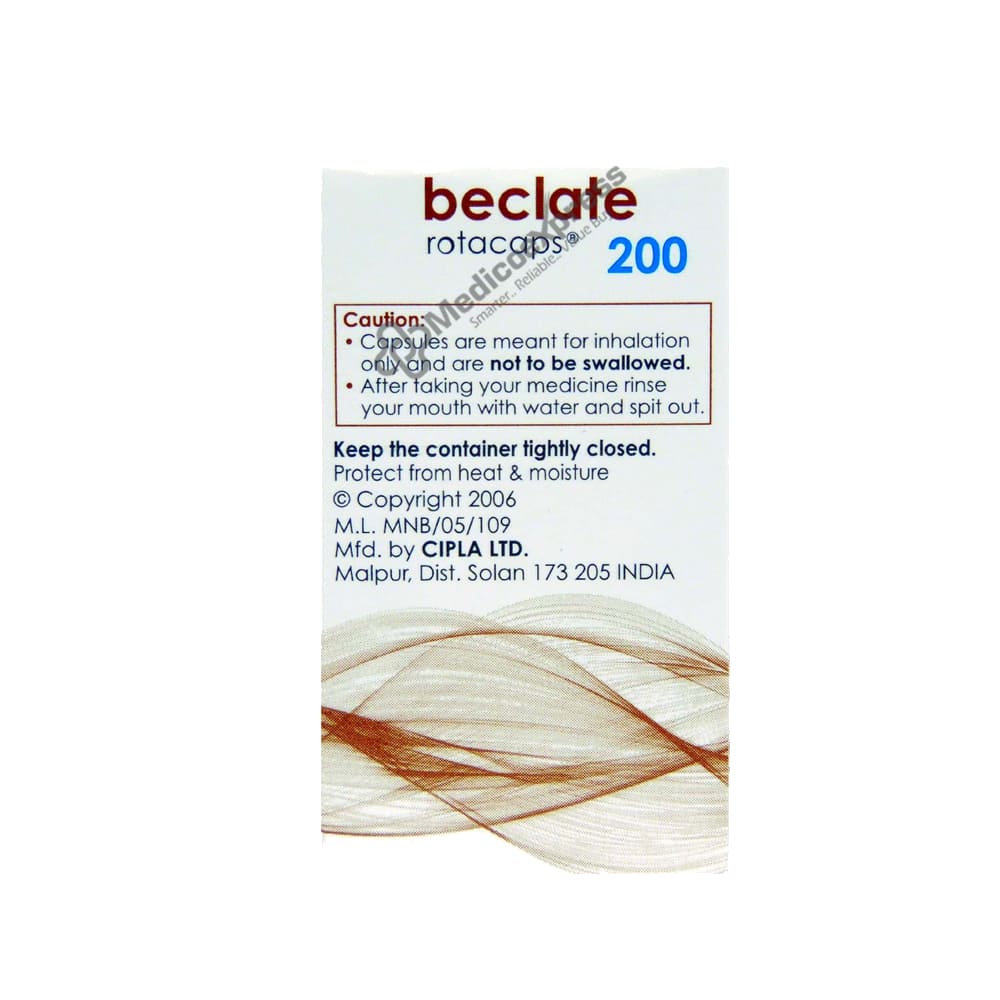 Beclate 200 Rotacap 30's is a corticosteroid medication that is used to prevent and control the symptoms of asthma.Disclaimer:For More Information Contact Your Physician