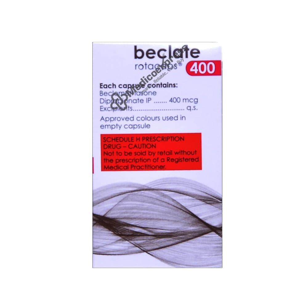 Beclate 400 mcg Rotacaps 30's are part of a class of medications known as "Corticosteroids," which are used to treat a variety of allergic and inflammatory conditions, as well as autoimmune diseases. It primarily treats and alleviates the symptoms of a wide range of inflammation, allergic disorders, autoimmune diseases, infections, and flare-ups of chronic illnesses.Disclaimer:For More Information Contact Your Physician