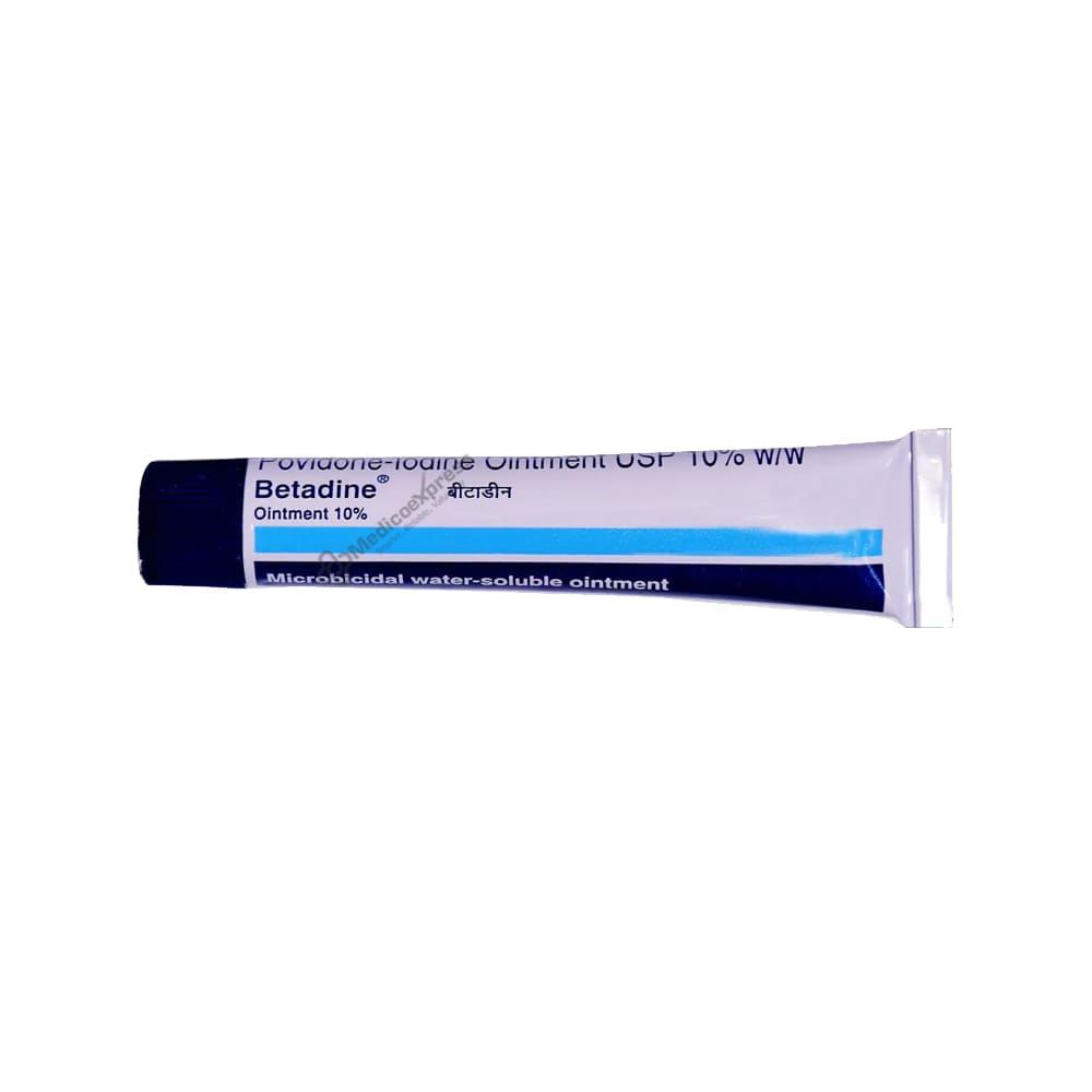 Betadine 10% ointment is a topical antiseptic used to treat and prevent infection in minor cuts and wounds. It protects against a wide range of germs that can cause infection in minor cuts + wounds + scrapes + and burns.Disclaimer:For More Information Contact Your Physician