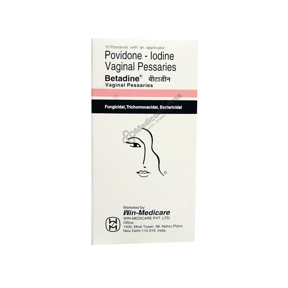 Betadine Vaginal Pessaries 10's is a fungicidal + bactericidal + and trichomonacidal agent that is used to treat vaginal infections such as vaginal candidiasis + Gardnerella vaginitis/bacterial vaginosis (bacterial overgrowth in the vagina) + trichomonal infections + and vaginal inflammation/vaginalitis.Disclaimer:For More Information Contact Your Physician