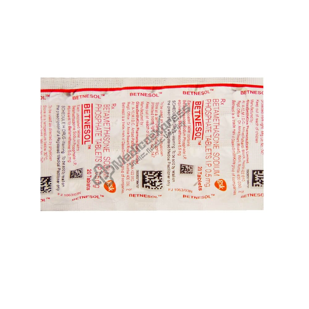 Betnesol tablet 20's belongs to the corticosteroid class of drugs, which are primarily used to prevent allergies such as swelling, itching, redness, heat, and pain caused by certain skin problems such as dermatitis (itchy, swelling of the skin) and psoriasis (scales and itchy, dry patches), eczema, and psoriasis (scales and itchy, dry patches) (itchy, cracked, swollen or rough skin).Disclaimer:For more information contact your physician