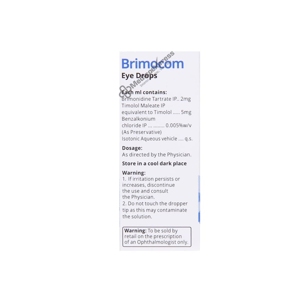 Brimocom Eye Drop is a prescription medication used to treat eye pressure (ocular hypertension) and glaucoma. It works by lowering the pressure of fluid in the eye (aqueous humour), which aids in the reduction of high eye pressure.Disclaimer:For More Information Contact Your Physician