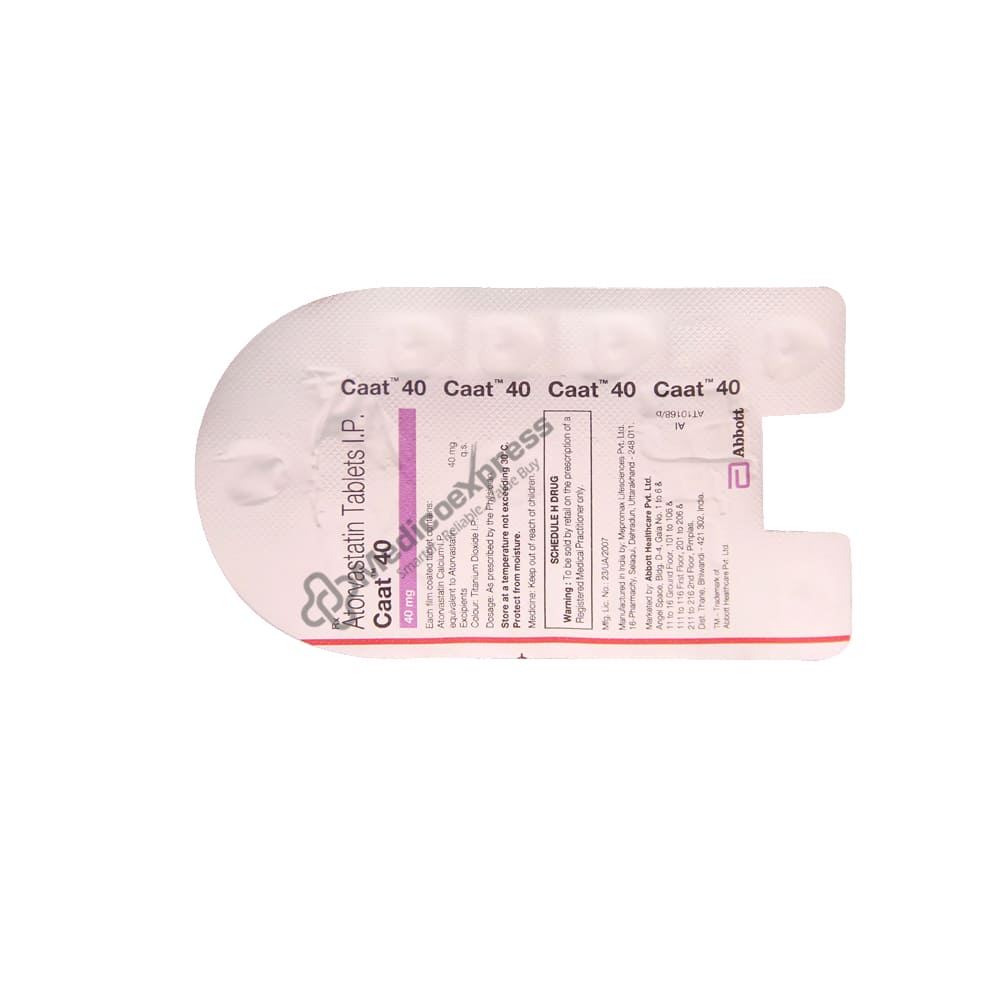 Caat 40 mg Tablet 15s are part of a group of drugs known as statins that are used to treat high cholesterol levels in the body. Low-density lipoprotein (LDL), or bad cholesterol, is reduced and high-density lipoprotein (HDL), or good cholesterol, is elevated in the blood as a result of taking Caat 40 mg Tablet 15s. The buildup of harmful lipid (fat) levels in the blood is known as dyslipidaemia. Low-density lipoprotein (LDL or bad cholesterol), triglycerides, and high-density lipoprotein (HDL) levels are always high in this syndrome (HDL or good cholesterol). Atorvastatin is an ingredient in Caat 40 mg Tablet 15s that works by reducing the amount of cholesterol that could build up on the walls of the arteries and prevent blood flow.Disclaimer:For more information contact your physician.