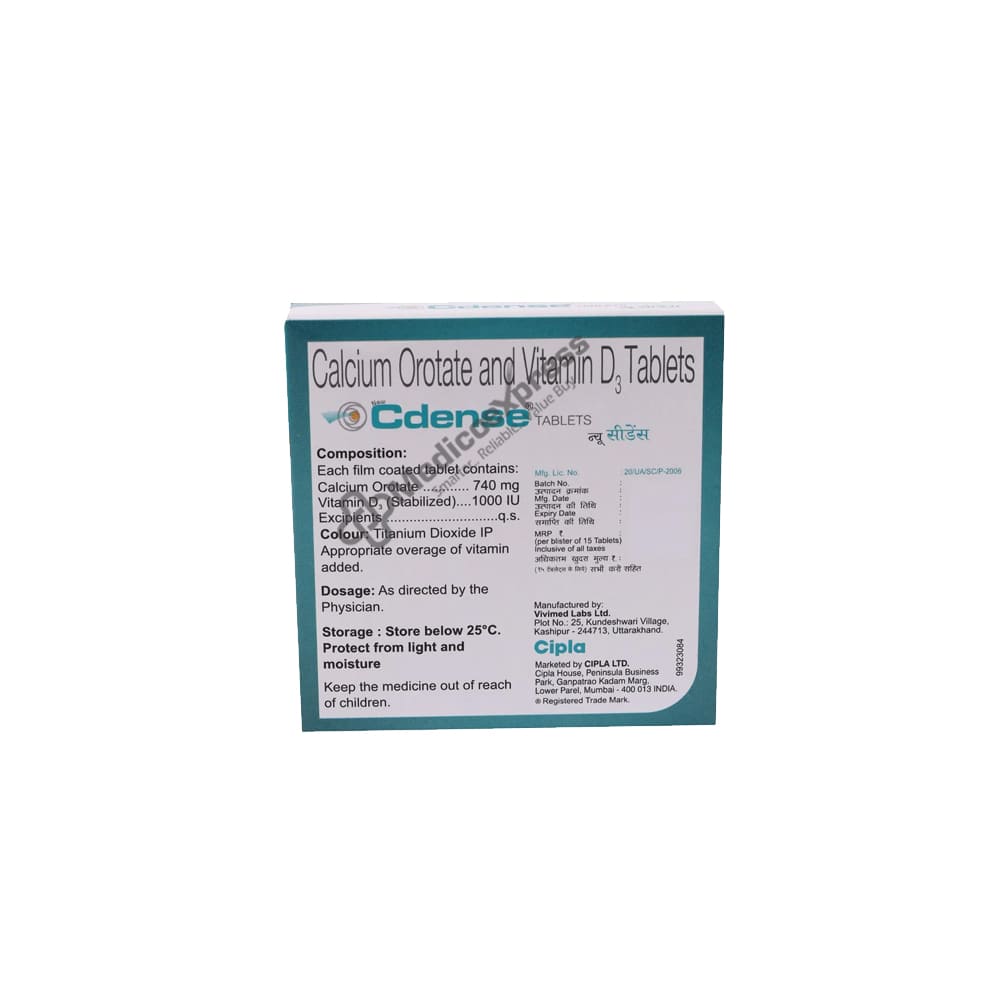 CDENSE TABLET is a 'nutritional supplement' that is primarily used to treat low blood calcium levels. CDENSE TABLET effectively treats a variety of conditions caused by low calcium levels in the body, including Vitamin D deficiency, osteoporosis (weak and brittle bones), hypoparathyroidism (a condition in which the parathyroid glands produce low calcium levels in the body), latent tetany (a muscle disease characterised by low blood calcium levels), and rickets or osteomalacia (softening or deforming of bones due to lack of calcium).Disclaimer:For More Information Contact Your Physician