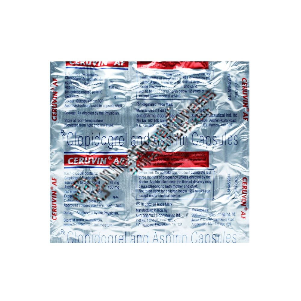 Ceruvin Af Capsule 15's Is An Antiplatelet Medication Used To Prevent Heart Attacks And Strokes.Disclaimer:For More Information Contact Your Physician