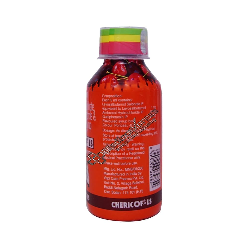 Chericof LS Syrup 100 ml belongs to the class of medications known as "expectorants," which are generally used to treat cough caused by mucus.Disclaimer:For More Information Contact Your Physician
