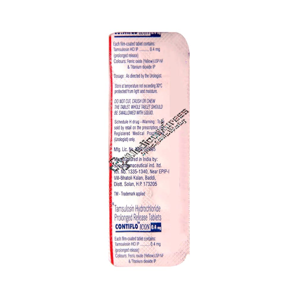 Contiflo Icon 0.4 mg Tablet 10's is an alpha-blocker medication that is primarily used to treat benign prostatic hyperplasia (enlarged prostate) and urinary bladder outlet obstruction.Disclaimer:For More Information Contact Your Physician