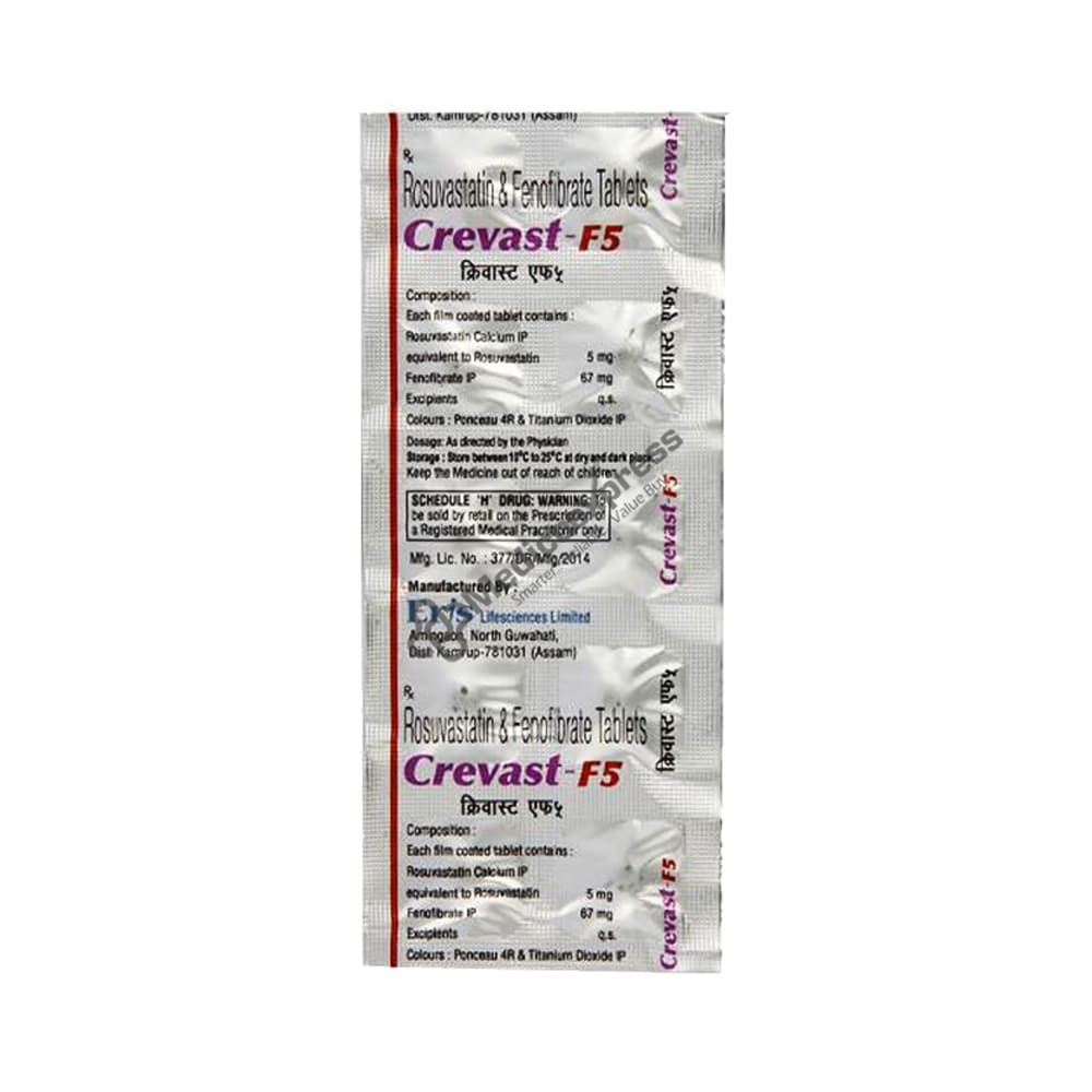 Crevast F 5Mg Tablet 10’s a Lipid-Lowering Medication That Is Used To Lower High Levels Of Total Cholesterol (Tc) And Triglyceride (Tg).Disclaimer:For More Information Contact Your Physician