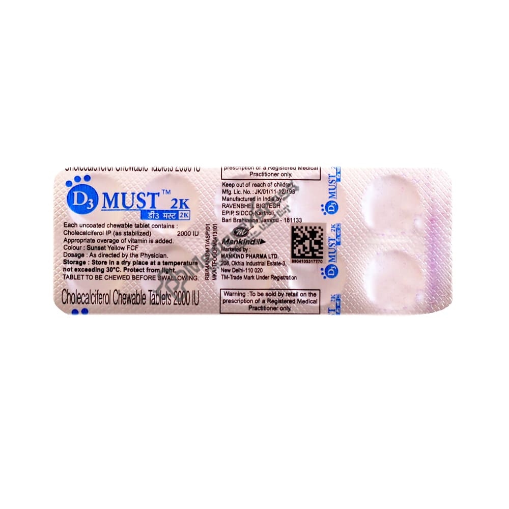 D3 Must 2k Tab Capsule 10's belongs to the class of 'Vitamins', primarily used to treat low blood calcium levels.Disclaimer:For More Information Contact Your Physician