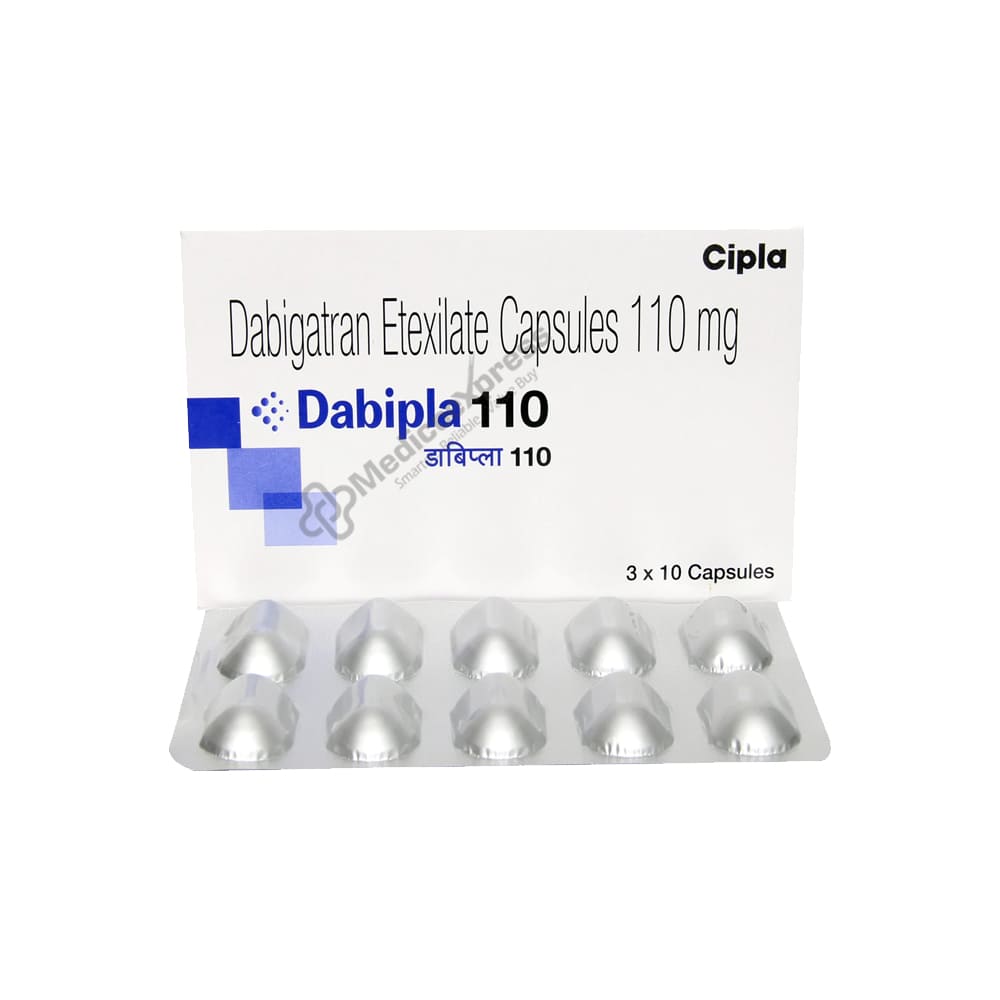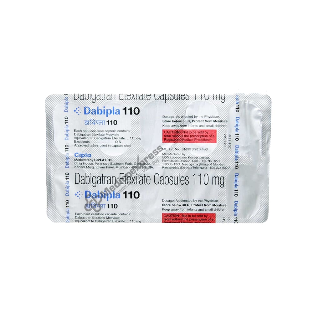 Dabipla 110mg Capsule is an anticoagulant or blood thinner. It is used to prevent and treat blood clots. It is used to lower the risk of stroke and heart attack. It prevents and treats clot formation in the veins of your legs, lungs, brain, and heart.Disclaimer:For More Information Contact Your Physician