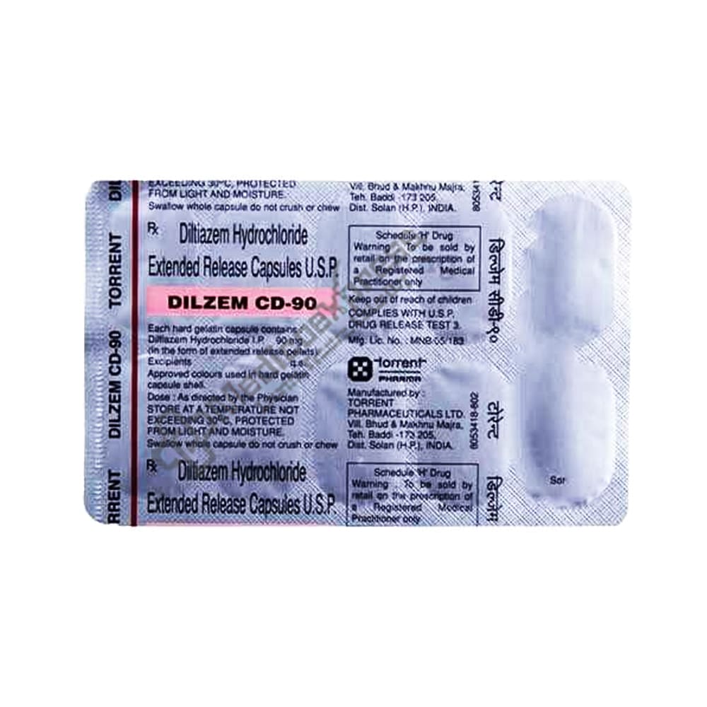 DILZEM CD 90 Tablet 15's contains 'Diltiazem' which works by relaxing the blood vessels in your heart and body, which reduces your raised blood pressure.Disclaimer:For More Information Contact Your Physician