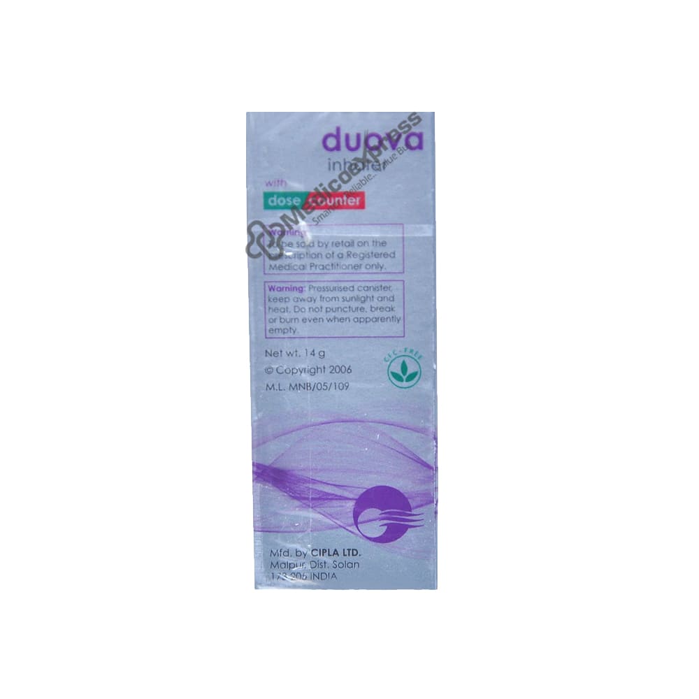 Duova Inhaler 200 mdi is primarily used to treat and prevent asthma and chronic obstructive pulmonary diseases (COPD) such as bronchitis (inflammation of the lining of your bronchial tubes) and emphysema (shortness of breath).Disclaimer:For More Information Contact Your Physician