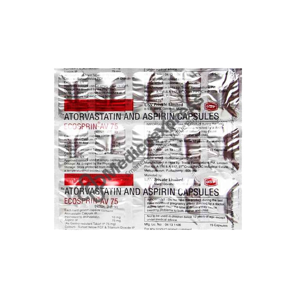 Ecosprin AV 150mg Capsule 10's is a combination drug of blood-thinning agents and cholesterol-lowering agents, primarily taken for the prevention of heart attack and stroke.Disclaimer:For More Information Contact Your Physician