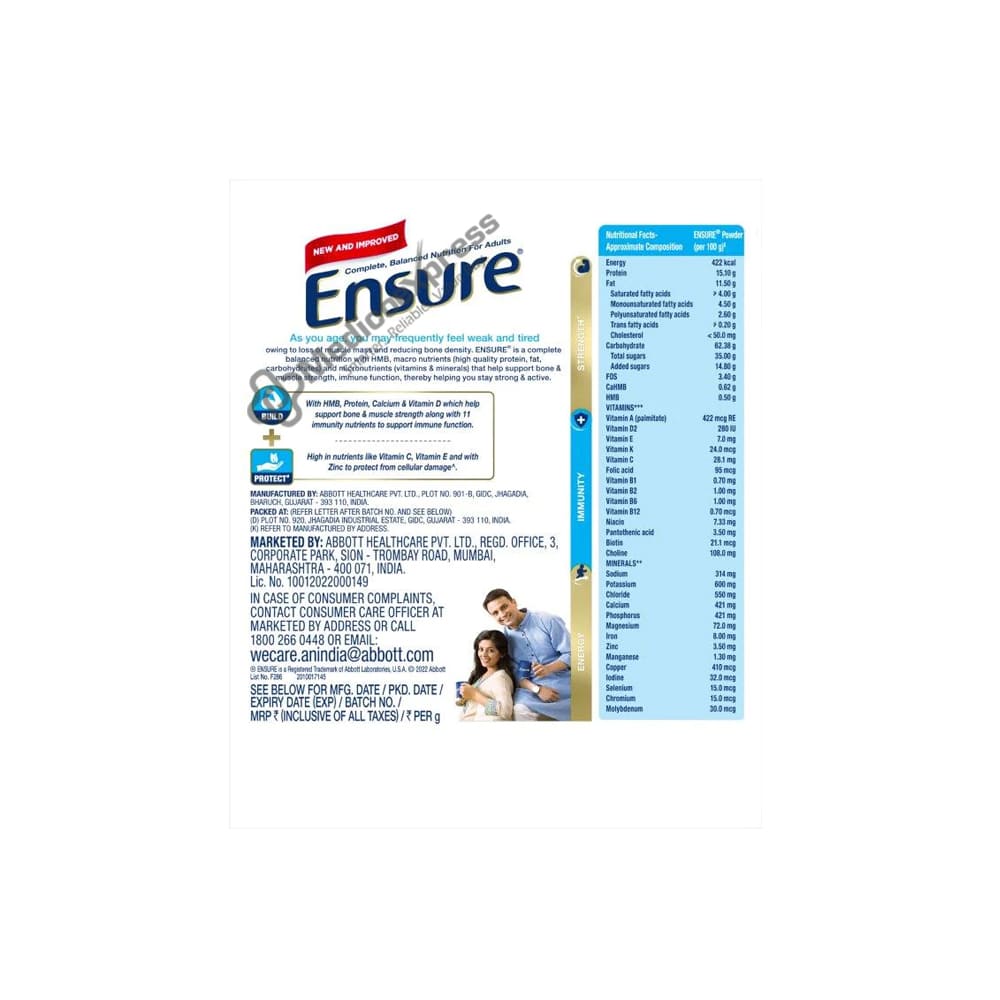 Ensure Chocolate is a powdered dietary supplement that helps the body's blood sugar levels stay balanced. Diabetes care can help diabetic patients maintain overall health along with appropriate moderation in daily activities like regular exercise. For diabetic patients, this product also ensures that fatigue and hunger pangs are controlled, improving their quality of life.Disclaimer : For More Details, Contact Your Physician