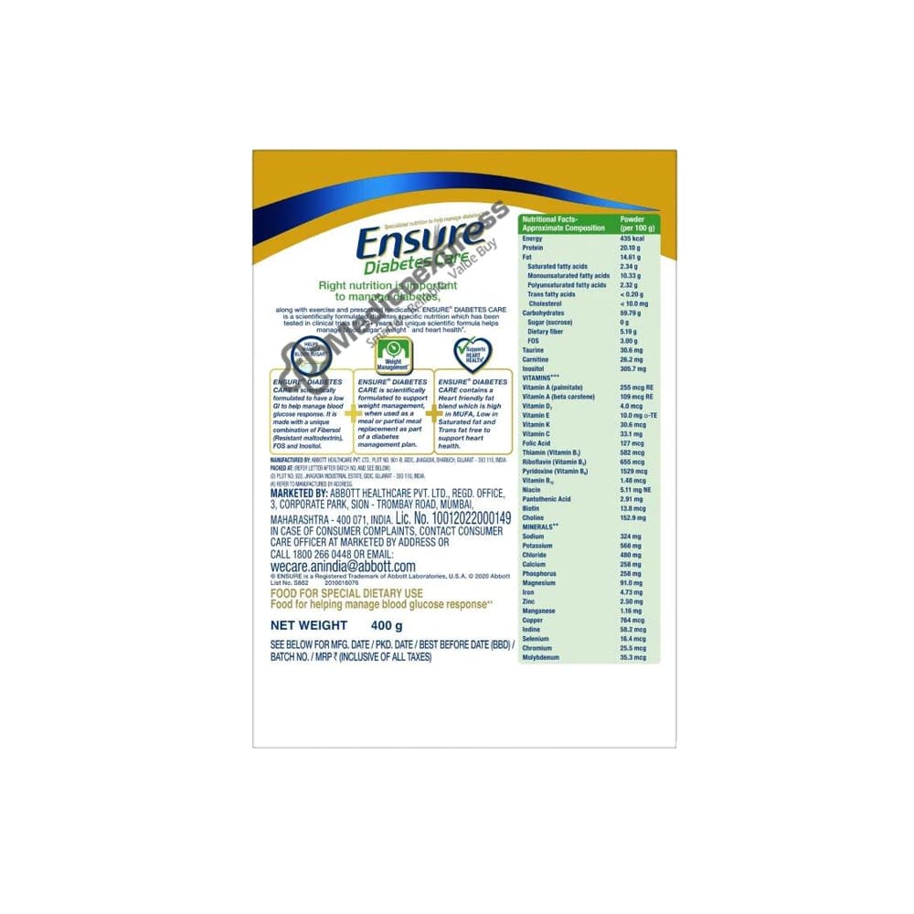 Ensure Diabetes Care Vanilla Delight is a powdered dietary supplement that helps the body's blood sugar levels stay balanced. Diabetes care can help diabetic patients maintain overall health along with appropriate moderation in daily activities like regular exercise. For diabetic patients, this product also ensures that fatigue and hunger pangs are controlled, improving their quality of life.Disclaimer : For More Details, Contact Your Physician