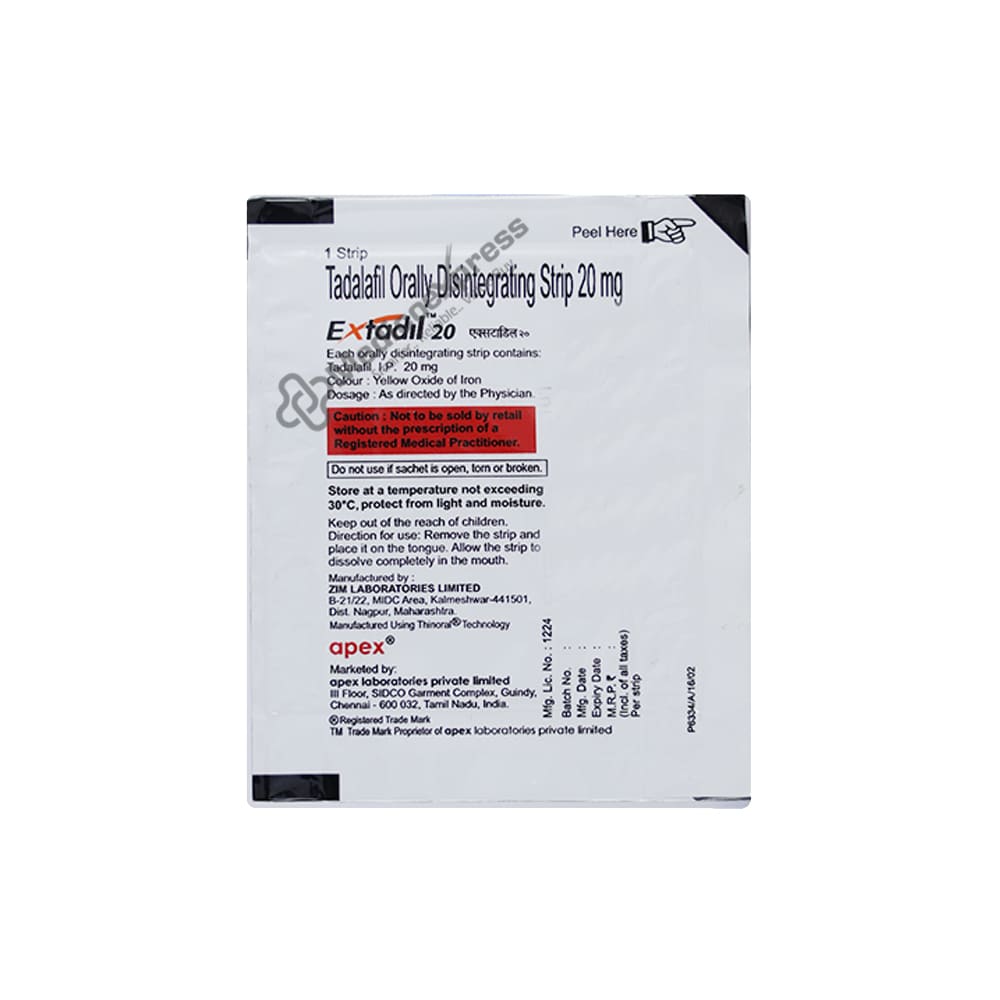 Extadil 20 Strip SAC Iis used to treat male erection problems. For men to have an erection, it inceases blood flow to the penis. It functions by aiding in the relaxation of the blood vessels in your penis, which then allows blood to flow into your penis during arousal of the senses..Disclaimer:For more information contact your physician.