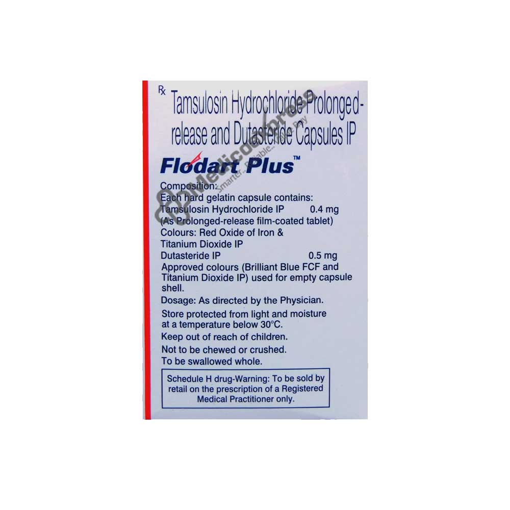 FLODART PLUS CAPSULE is a combination of Dutasteride and Tamsulosin, which are 5-Alpha reductase inhibitors and Alpha-blockers, respectively. It is prescribed to men to treat the signs and symptoms of Benign Prostatic Hyperplasia (BPH). Benign Prostatic Hyperplasia (also known as enlarged prostate) is a non-cancerous growth of the prostate gland caused primarily by an excess of the stress hormone dihydrotestosterone (DHT) in men.Disclaimer:For More Information Contact Your Physician