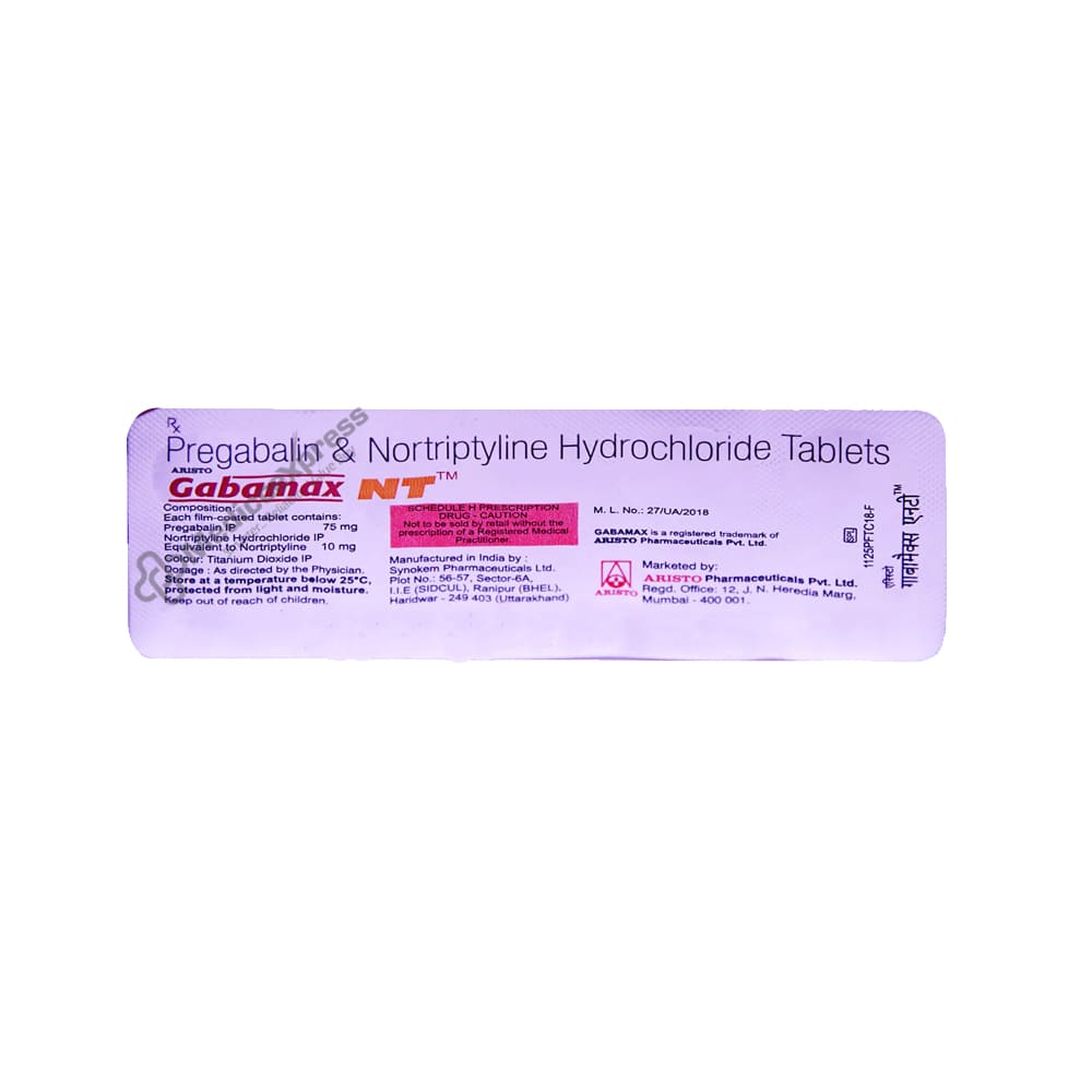 GABAMAX NT 75MG TABLET is an amalgam of two drugs, Nortriptyline and Pregabalin, which are classified as Tricyclic Antidepressants and Anticonvulsants, respectively. The GABAMAX NT 75MG TABLET is prescribed to treat neuropathic pain. A disease or injury to the somatosensory nervous system, which controls our sense of touch, can result in neuropathic pain, a chronic painful nerve condition.Disclaimer : For More Details, Contact Your Physician