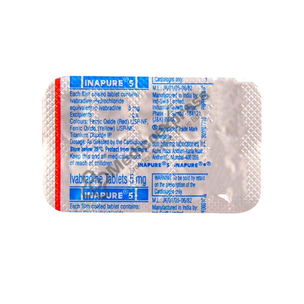 Inapure 5 Tablet 10's Is a Medication That Belongs To The Class Of Hyperpolarization-Activated Cyclic Nucleotide-Gated (Hcn) Channel Blockers And Is Primarily Used To Treat Symptomatic Stable Angina Pectoris And Chronic Heart Failure.Disclaimer:For More Information Contact Your Physician