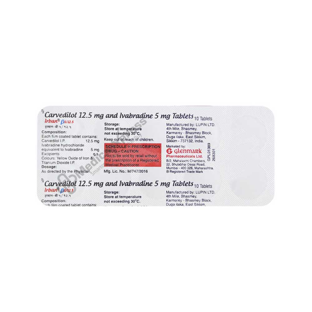 rban 5mg Tablet 10'S, is a member of the class of drugs known as hyperpolarization-activated cyclic nucleotide-gated channel blockers. IRBAN 5MG TABLET is used to treat adult patients with symptomatic stable angina pectoris (chest pain) whose heart rate is more than or equal to 70 beats per minute and who are intolerant to or unable to take heart medications (such as beta blockers). As a combination therapy with beta-blockers or in adult patients for whom the use of beta-blockers is contraindicated, it is also used to treat chronic heart failure in adults whose heart rates are over or equivalent to 75 beats per minute. It is not advised for patients who are allergic to ivabradine to take rban 5mg Tablet 10'S. Additionally, it is not advised that people with extremely low blood pressure use it.Disclaimer:For more information contact your physician.