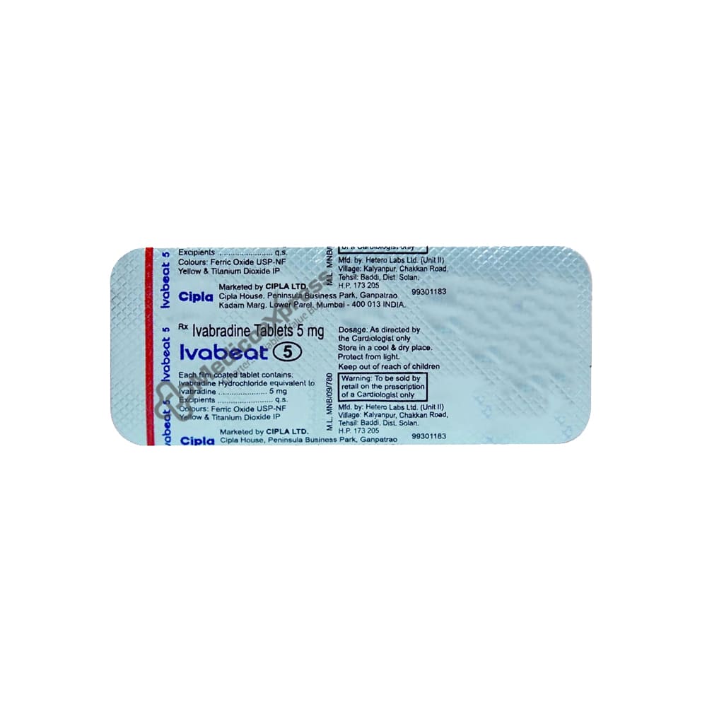 Ivabeat 5 Tablet is a prescription medication used to treat angina (heart-related chest pain) and chronic (long-term) heart failure. It improves the efficiency of the heart by lowering the heart rate. This relieves chest pain and lowers the risk of hospitalisation in patients with heart failure.Disclaimer:For More Information Contact Your Physician