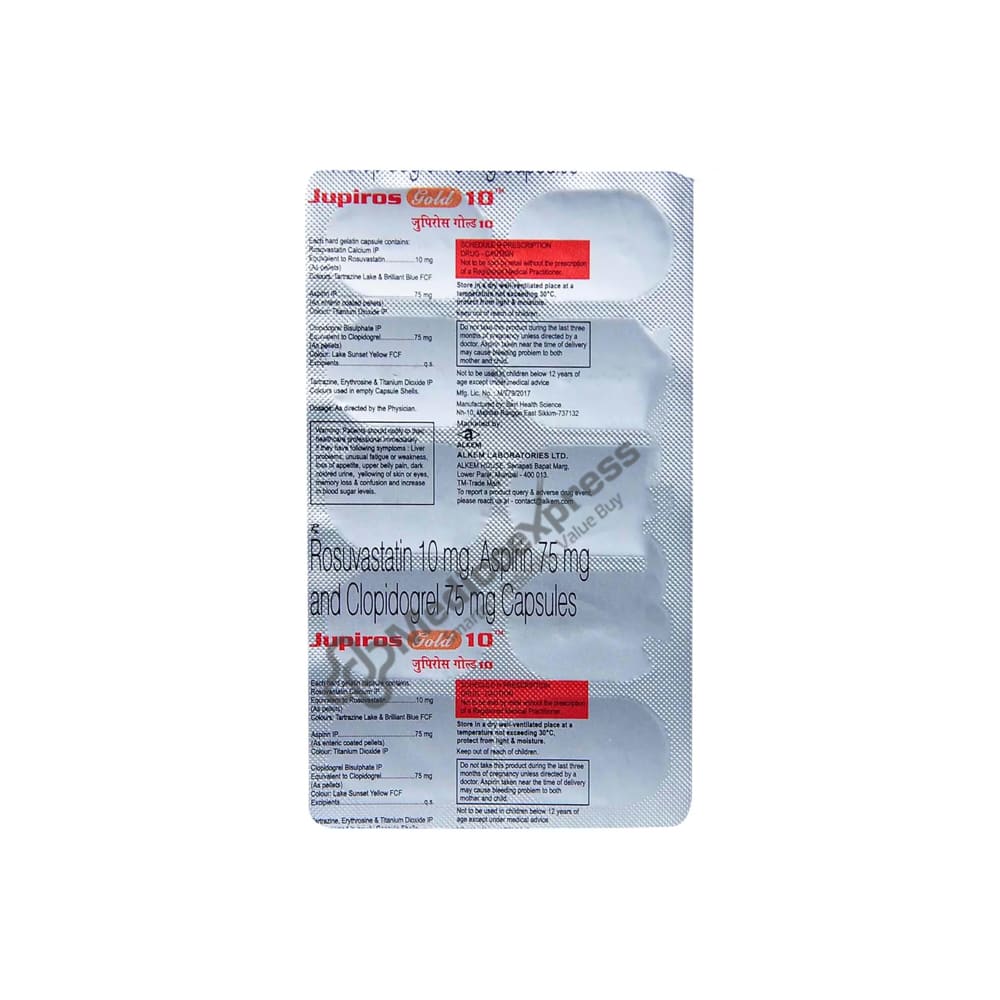 Jupiros A 75mg Capsule 10'S contains Aspirin and Rosuvastatin, two medications that are classified as HMG-CoA reductase inhibitors and Nonsteroidal anti-inflammatory drugs (NSAIDs), respectively. Dyslipidemia, or elevated blood lipid levels, are treated with it. Additionally, it can be used to lower the risk of heart attack, stroke, atherosclerosis (the narrowing of blood vessels as a result of fat deposition), or peripheral vascular disease (blockage of blood vessels outside the heart)..If you have any renal or cardiac issues, let your doctor know before using Jupiros A 75mg Capsule 10'S. Additionally, you need to let your doctor know if you have diabetes, high blood pressure, a family history of muscular issues, or if you have any future surgeries.Disclaimer:For more information contact your physician.