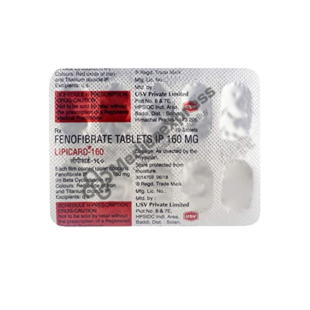 Lipicard-160 Tablet 10's belongs to a class of drugs known as 'fibric acid derivatives' or 'fibrates,' which are generally used to treat high or elevated levels of cholesterol or fat/oils.Disclaimer:For More Information Contact Your Physician