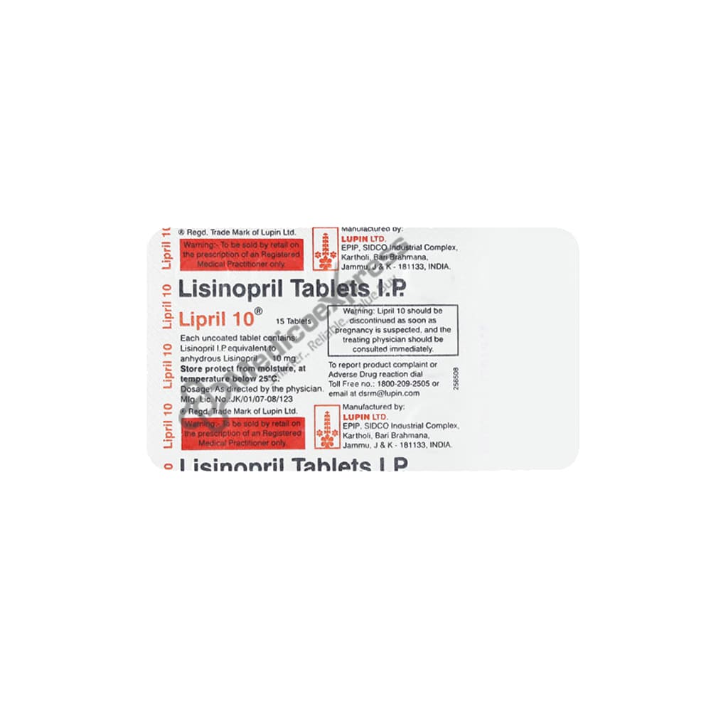Lipril 10mg Tablet 15'S, is a member of the class of drugs known as antihypertensive medications. Heart failure and hypertension (high blood pressure) are both treated with it. It also delays the onset of heart failure symptoms (such as breathing difficulties, swelling ankles and feet, or excessive exhaustion even after light exercise), and it can lessen kidney damage in diabetics with high blood pressure. If you have any liver, kidney, or cardiac issues, let your doctor know before using Lipril 10mg Tablet 15'S (other than hypertension and heart failure). Additionally, you must let your doctor know if you have diabetes, severe hypotension (low blood pressure), or severe dehydration as a result of a recent illness (such as vomiting or diarrhea)Disclaimer:For more information contact your physician.