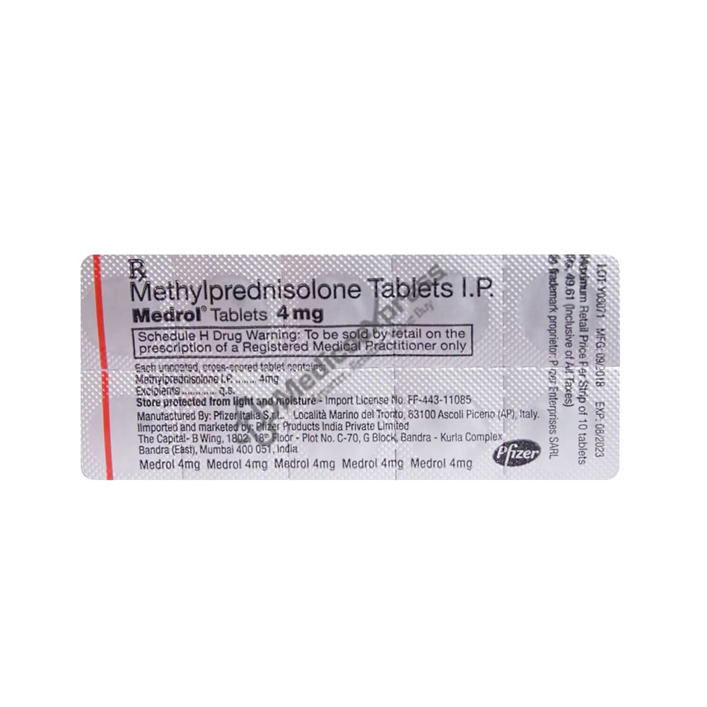 Medrol 4 Mg Tablet 10's Contain The Corticosteroid Prednisolone. Corticosteroids And Anabolic Steroids Are Not The Same Thing. It Relieves Symptoms By Preventing The Release Of Chemicals That Cause Inflammation (Redness And Swelling) And Allergies.Disclaimer:For More Information Contact Your Physician