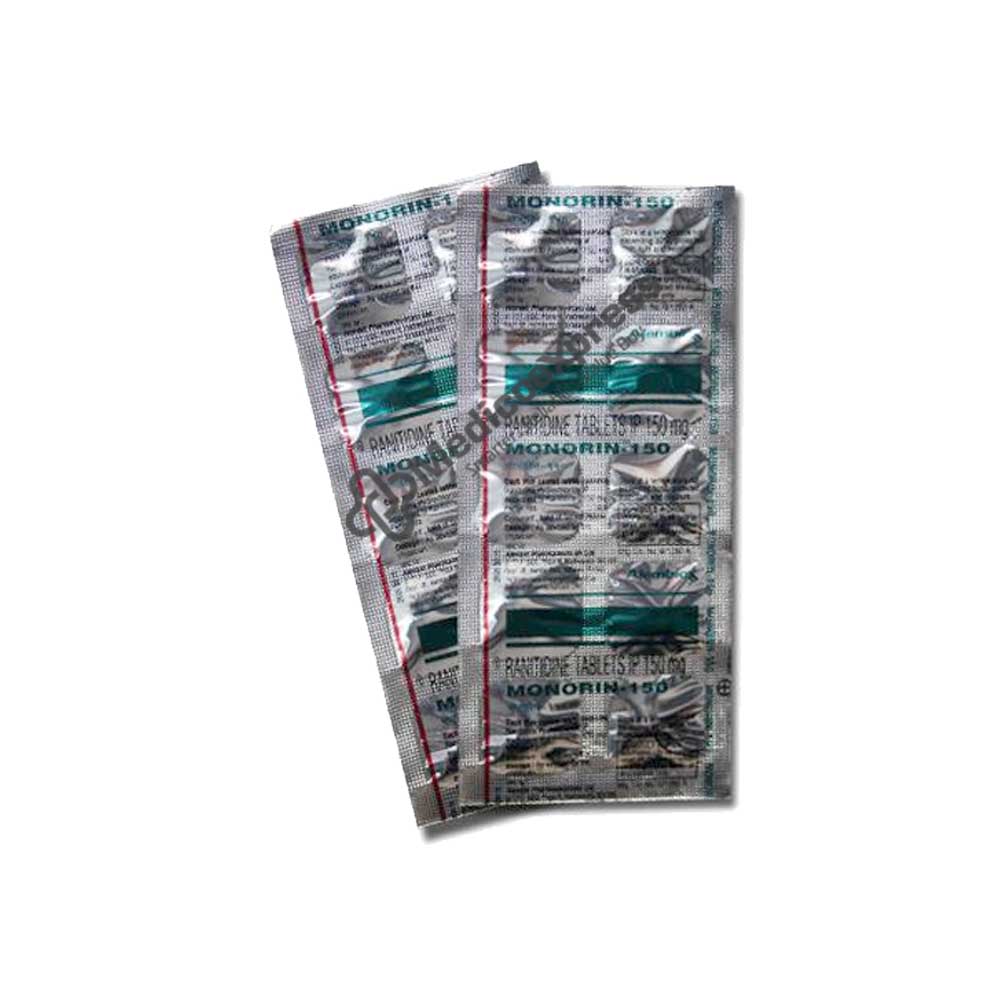 Monorin 150 mg Tablet 30 belongs to the gastrointestinal agent class. It is used to treat heartburn, indigestion, and acid reflux. When you have acid reflux, it is also used to treat gastro-oesophageal reflux disease (GORD). It is also employed in the prevention and treatment of stomach ulcers. It is frequently used to treat Zollinger-Ellison Syndrome, a rare condition caused by a pancreatic or intestine tumour.Disclaimer:For More Information Contact Your Physician