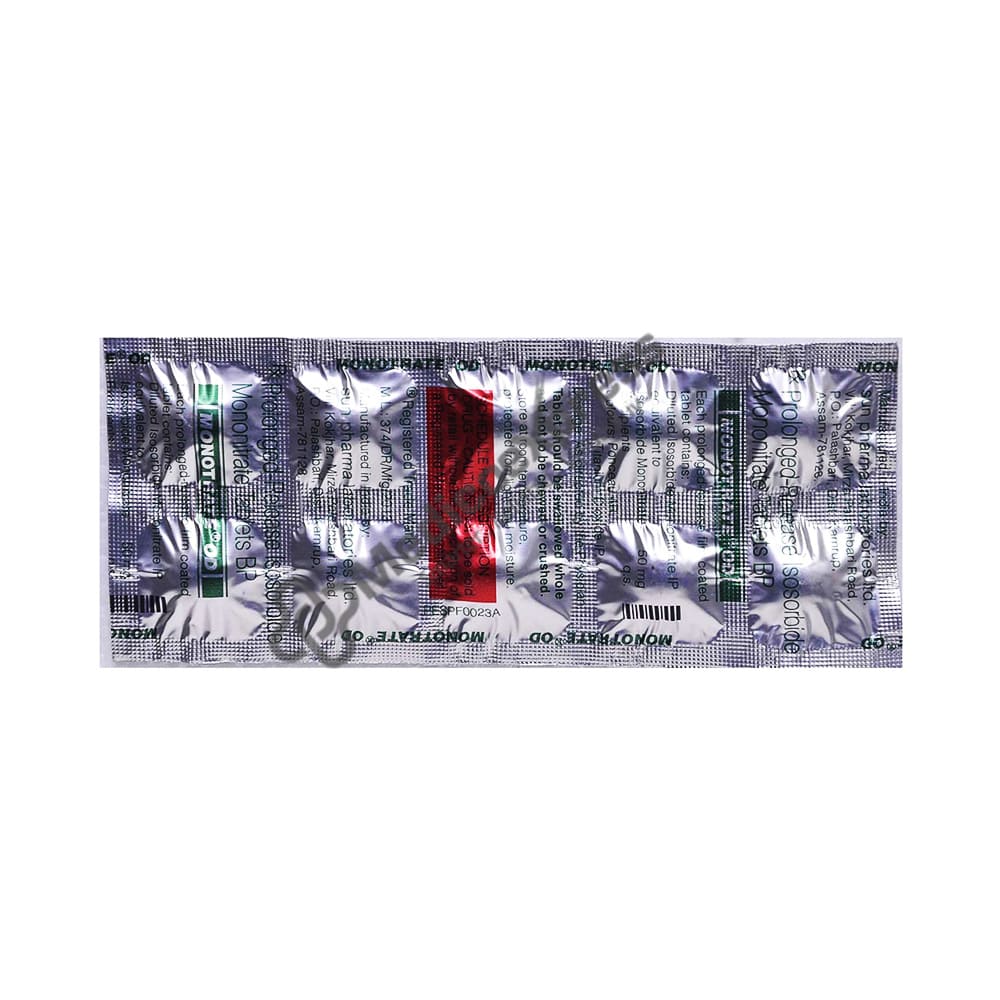 MONOTRATE OD 50MG contains isosorbide-5-mononitrate, a medication that belongs to the class of drugs known as nitrate vasodilators. It's used to keep angina at bay. Angina pectoris is defined as a sudden, sharp, severe pain that radiates from the apex of the heart to the left shoulder.Disclaimer:For More Information Contact Your Physician