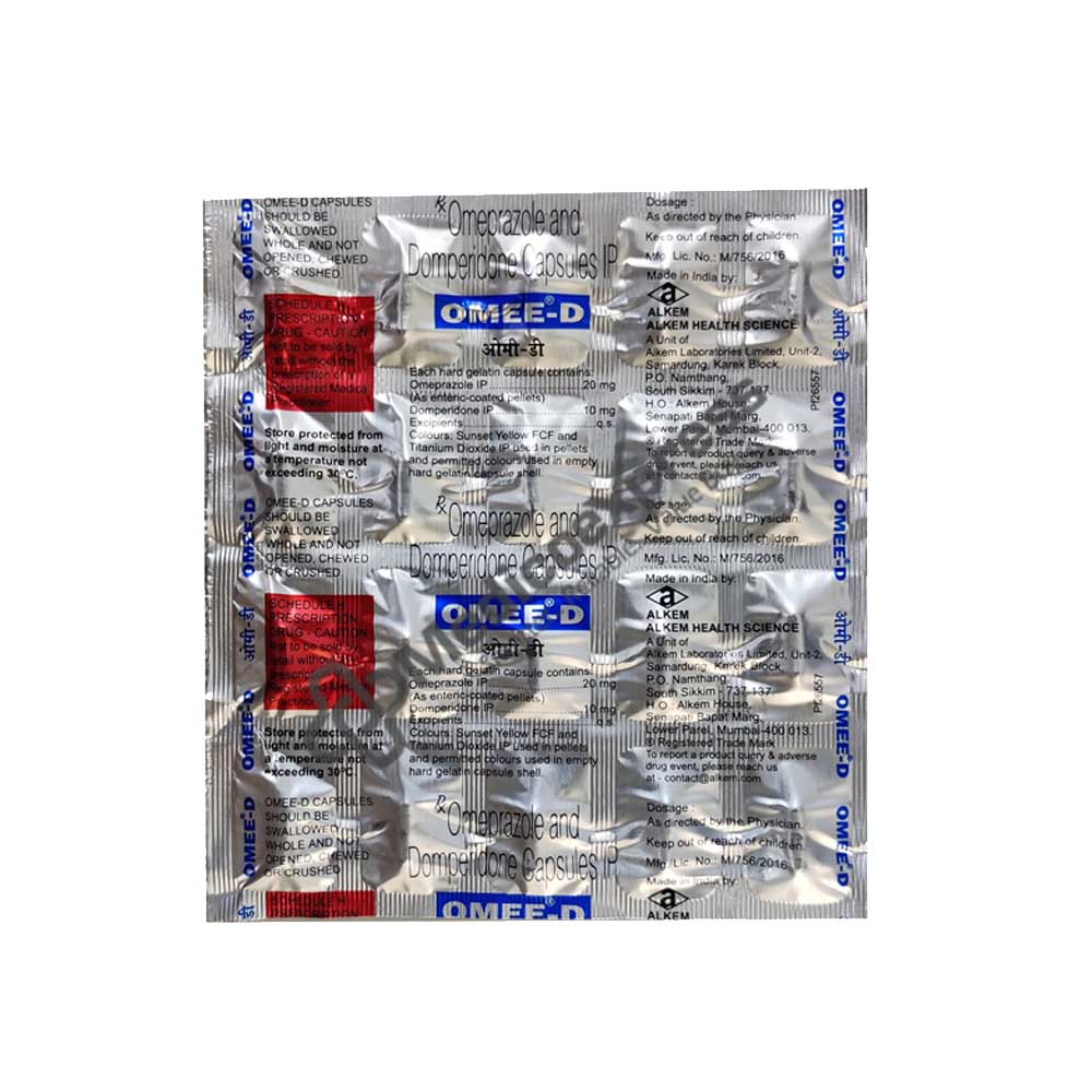 Omee-D Capsule 20s are gastrointestinal agents that are used to treat heartburn, indigestion, epigastric pain, gastro-oesophageal reflux disease (GERD), peptic ulcers, and Zollinger-Ellison syndrome. Gastroesophageal reflux disease (GERD) occurs when stomach acid flows back into the food pipe on a regular basis (oesophagus). Peptic ulcers are sores that form on the intestine and stomach's inner lining. The formation of tumours in the upper part of the small intestine causes Zollinger-Ellison syndrome, which results in excessive acid production.Disclaimer:For More Information Contact Your Physician