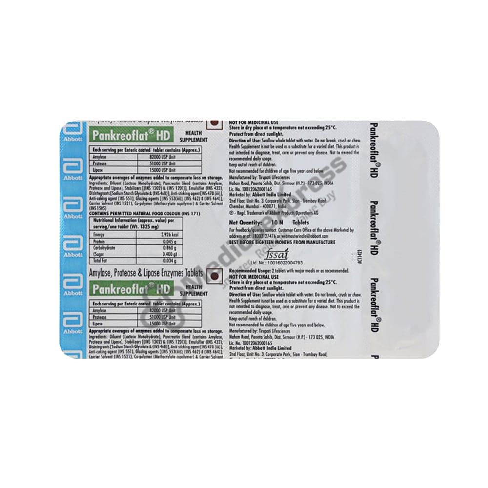 Pankreoflat HD Tablet is a tablet that contains digestive enzymes that can help with digestion.Disclaimer:For More Information Contact Your Physician