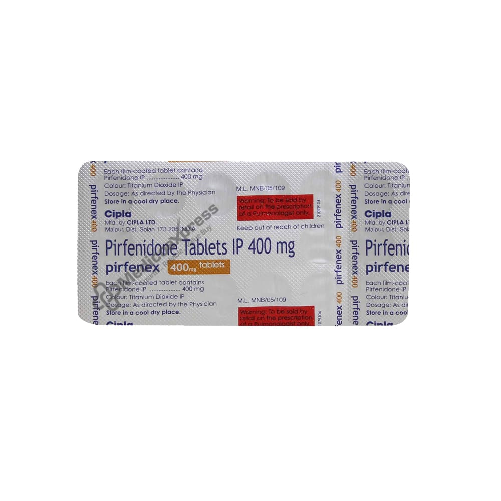 Pirfenidone, which is found in PIRFENEX 400MG, is an anti-fibrotic or anti-inflammatory agent. It is used to treat adults with mild to moderate Idiopathic pulmonary fibrosis.Disclaimer:For More Information Contact Your Physician