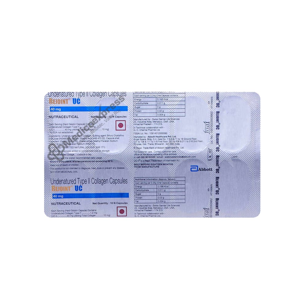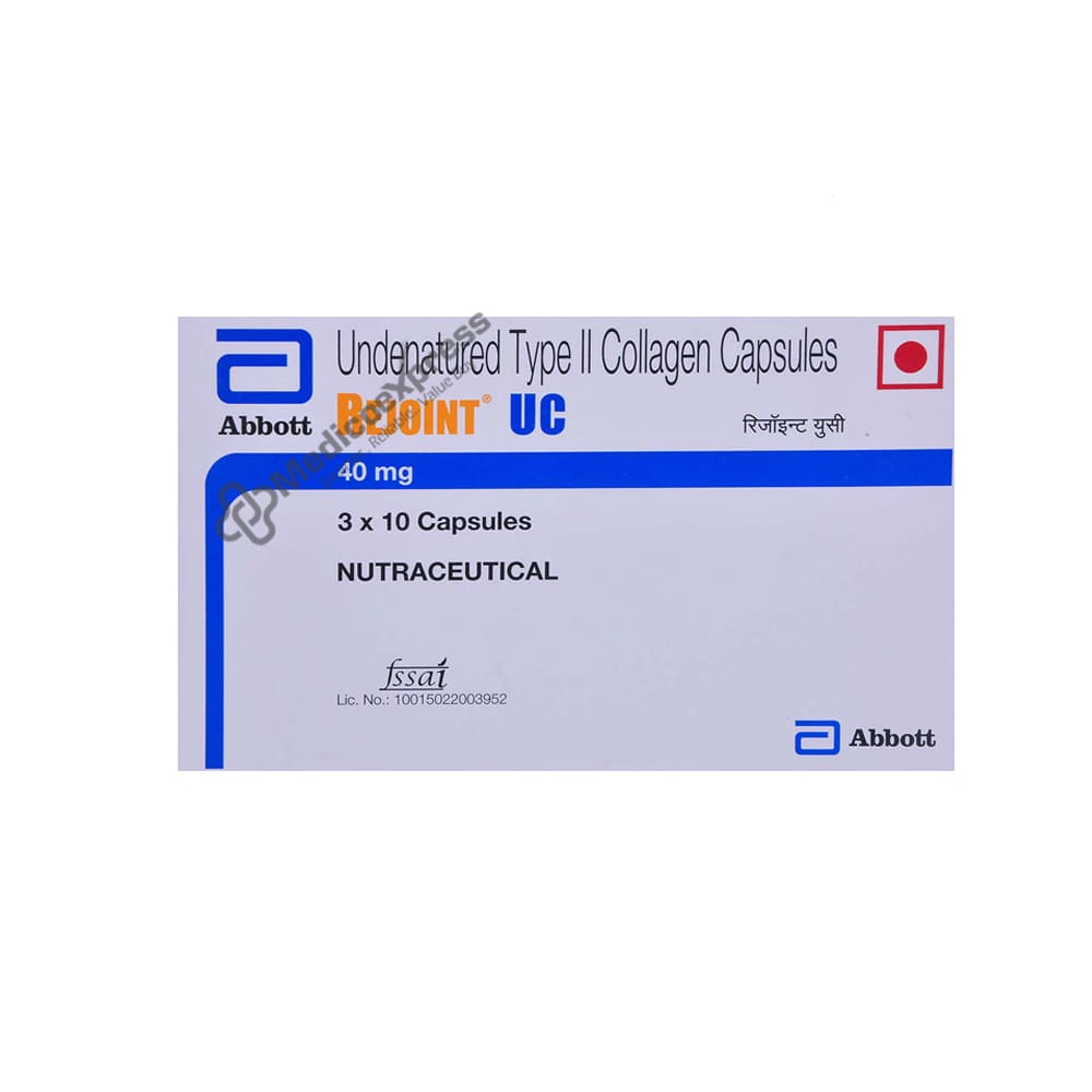 Rejoint UC capsule is an over-the-counter medication used to treat conditions such as sports injuries, osteoarthritis, and rheumatoid arthritis. It contains undenatured collagen type II, which is a collagen-based nutritional supplement that helps with osteoarthritis.Disclaimer:For More Information Contact Your Physician
