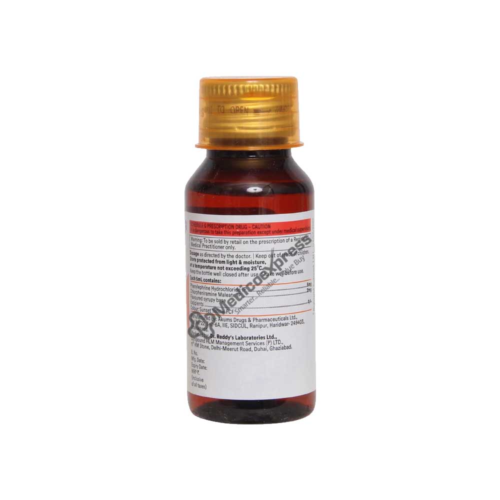 Relent Cold Syrup 60 ml is a member of the class of drugs known as "anti-allergic agents" and is generally used to treat cold and allergy symptoms like sneezing, runny or stuffy nose, congestion, or watery eyes. A respiratory condition that affects the nose and throat is the common cold. Most often, 'rhinovirus' viruses are at blame. When a sick individual sneezes, coughs, or speaks, the virus easily spreads through airborne droplets after entering the body through the nose, mouth, or eyes. Chlorpheniramine maleate and phenylephrine hydrochloride are ingredients in Relent Cold Syrup, a 60 ml bottle. The body's natural production of histamine, which is known to produce allergy symptoms, is blocked by chlorpheniramine maleate. In order to relieve nasal congestion, phenylephrine hydrochloride works to constrict the blood vessels in the nasal canal.Disclaimer:For more information contact your physician.