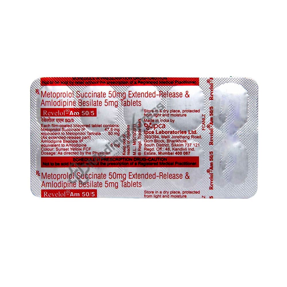 Revelol-Am 50/5 Tablet 15's An Antihypertensive Medication Used To Treat High Blood Pressure/Hypertension And Angina Pectoris.Disclaimer:For More Information Contact Your Physician